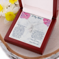 Melt her heart with this ALLURING BEAUTY necklace gift! The petite ribbon shaped pendant is finished with 14K white gold over stainless steel, and is embellished with dainty clear crystals surrounded by a sparkling 7mm round cut Cubic Zirconia.